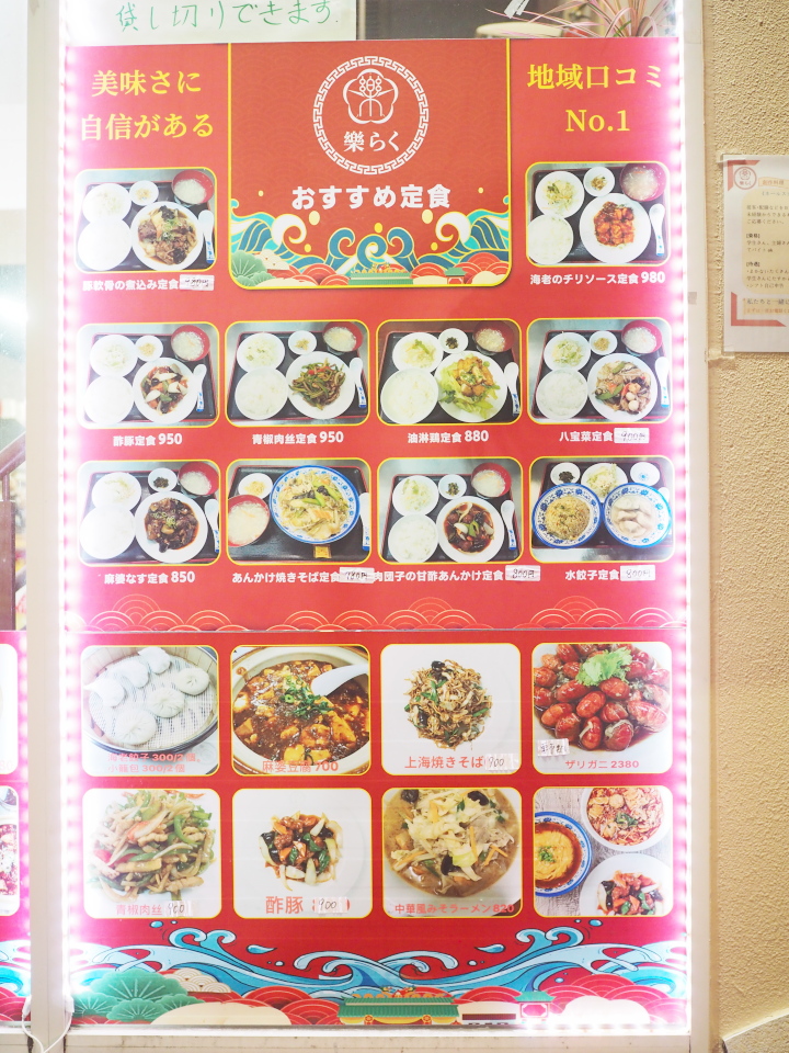 本格中華が食べられそうと、横道に少し入ったところにある樂らくさんへ。