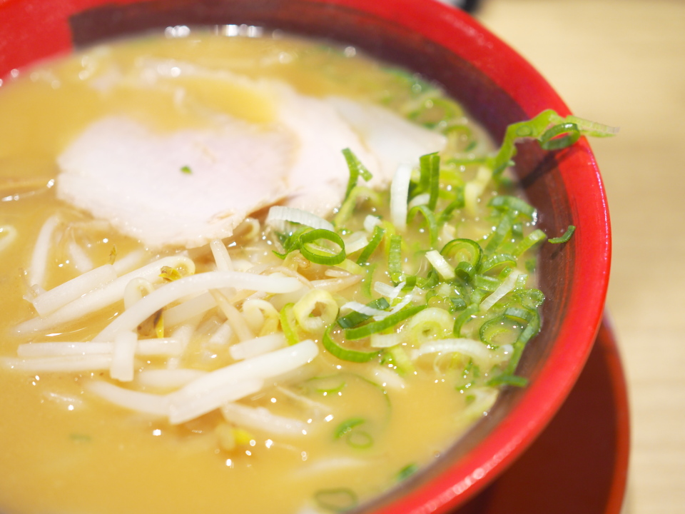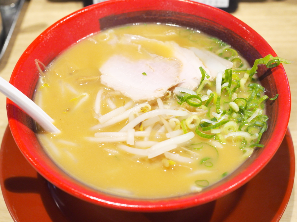 トッピングでもやしを追加。野菜不足を補います。横綱さんは国産ネギが入れ放題なのがうれしい。欲張りな私は追加します。