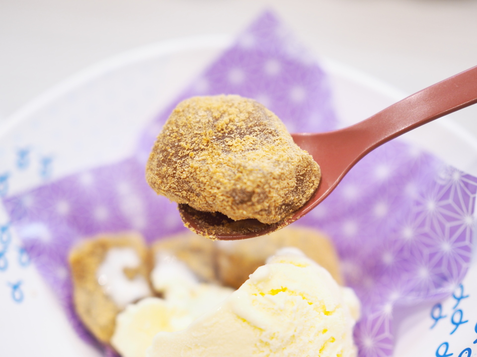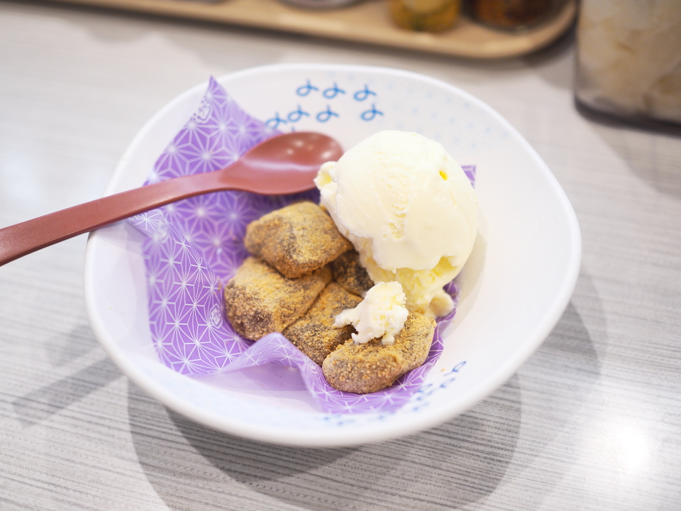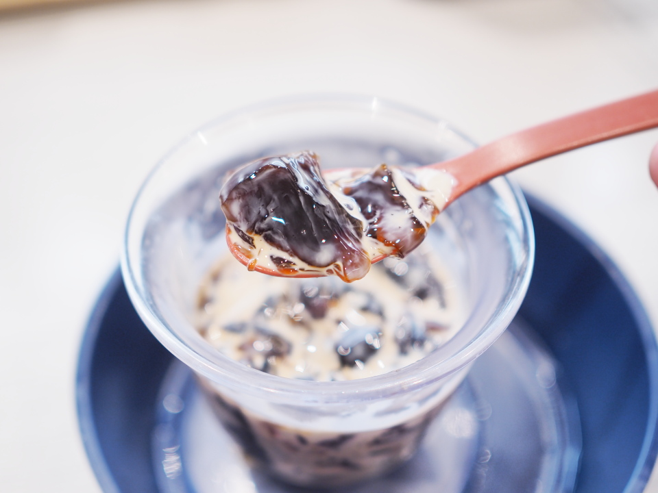 コーヒーゼリーは初めての注文。コーヒーフレッシュをかければ、まろやかさが増します。わらびもちのバニラアイスを一緒に食べると、まるでコーヒーフロート。