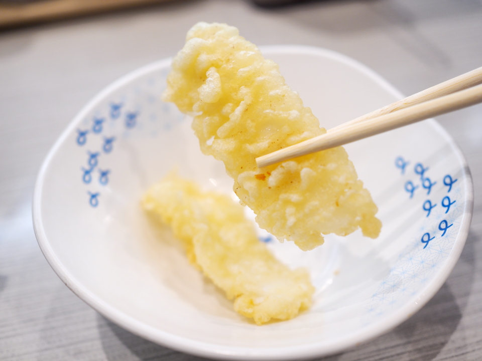 いか天は熱々で、サクサク。食べたい量だけ注文できるのが回転すしの良いところ。